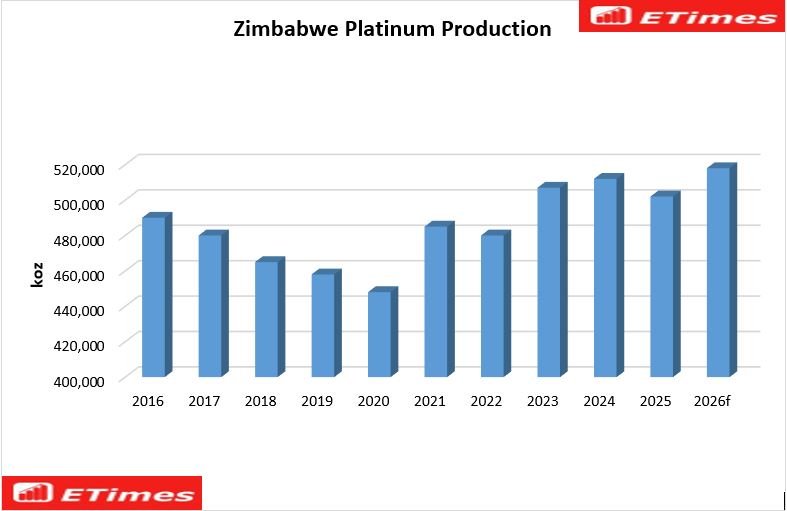 TweetShareSharePin0 SharesBy ETimes HARARE – PLATINUM production in Zimbabwe declined by 2% to 502 000 ounces in 2025 from an all-time high of 512 000 ounces in 2024, the latest…