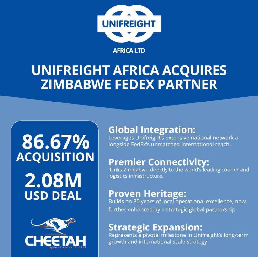 HARARE – UNIFREIGHT Africa Ltd has completed an 86.67% acquisition of Cheetah Express Logistics in a US$2.08 million deal, marking a decisive shift toward a fourth-party logistics (4PL) operating model. The transaction deepens Unifreight’s integration into global logistics networks through its alignment with FedEx, positioning the firm as a higher-value orchestrator of supply chains rather than a traditional asset-heavy transporter.